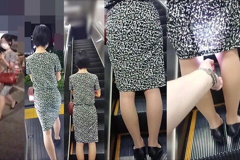 スカート内を撮影する瞬間をとらえた、決定的瞬間の映像です。
