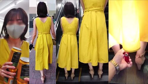 涼しげな黄色のワンピースを着たお目々が大きな女の子です。マスクを着用してるものの、かわいいオーラは隠しきれていませんでした。3回目の撮影はPを捕らえることができなかったため、本品には含んでいません。白のPが食い込んでいました。