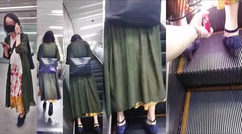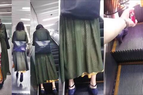 スカート内を撮影する瞬間をとらえた、決定的瞬間の映像です。