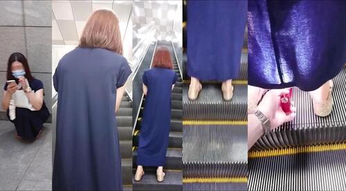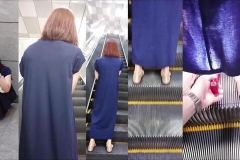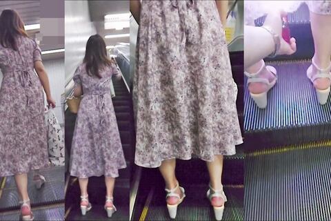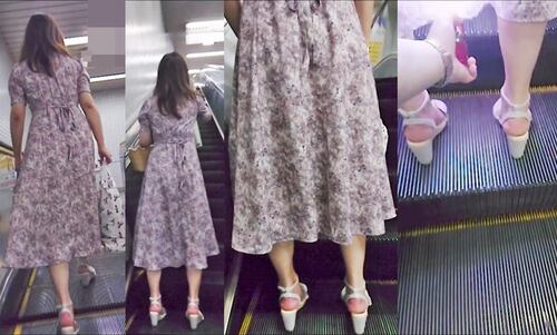 4人目は熟女さんでもガードル履きでもなく、茶髪の若い女性で薄いピンクのPでした。この女性を狙って1つめのエスカレーターで2回撮影し、2つめのエスカレーターでさらに撮影しようとしたところ、彼女の前にいた別の女性が1つめのエスカレーターを降りた後で、スマホを見て立ち止まっていたため、順番が入れ替わる形となり、入れ替わったのが続く5人目のガードル履き熟女さんだったため、この若い女性(ナマP)も今作に含めました。お顔の撮影はできませんでした。