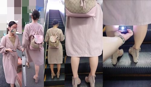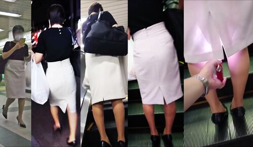 白のタイトスカートの女性です。2回目の撮影後に電話での通話を始め、その内容から保険会社のセールスレディであることがわかりました。薄手のパンストなので、本来はきっちりPが確認できるはずなのに、それらしきものが見当たりません。股間前方はうっすら黒くなっているので、もしかしたらノーパンかもしれません。だとしたら保険のセールスで顧客と枕営業でもしていたのではないか?と想像してしまいます。