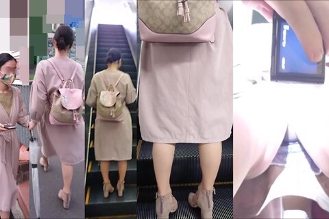 スカート内を撮影する瞬間をとらえた、決定的瞬間の映像です。