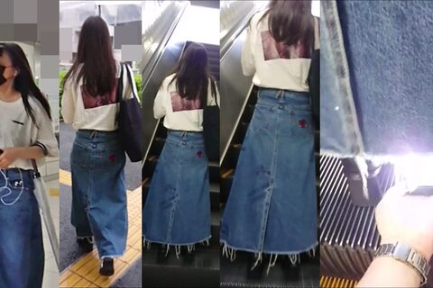 スカート内を撮影する瞬間をとらえた、決定的瞬間の映像です。