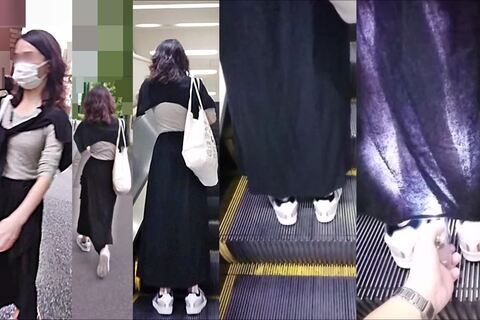 黄色のワンピースの女性です。ヒールが高く、なおかつ厚底のサンダルを履いていました。そのサンダルの間に空いたわずかなスペースにカメラを突っ込み、真下からのアングルで撮影を行いました。Pは黒のTで、激しく食い込んでいました。