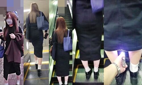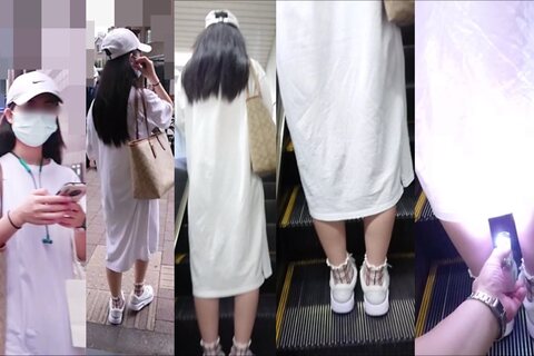 スカート内を撮影する瞬間をとらえた、決定的瞬間の映像です。