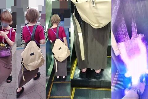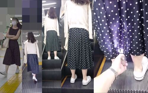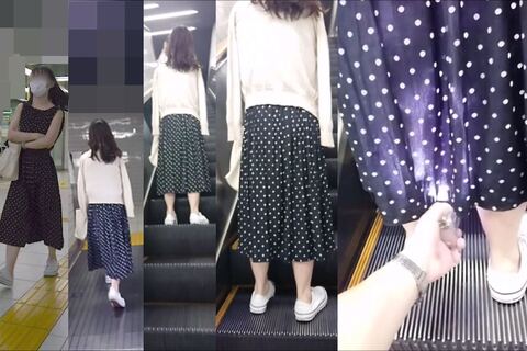 スカート内を撮影する瞬間をとらえた、決定的瞬間の映像です。