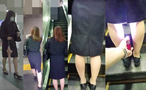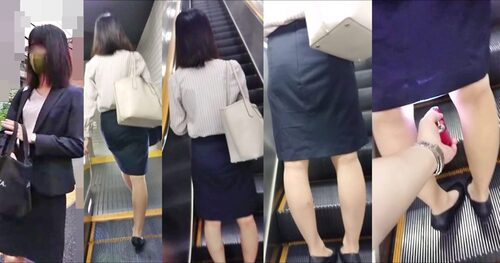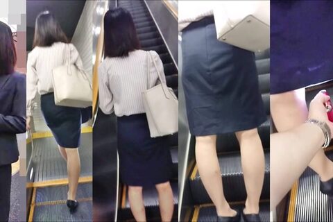 逆さの決定的瞬間!エロさ際立つタイトスカートのOL