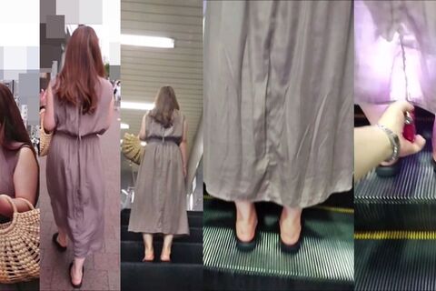 スカート内を撮影する瞬間をとらえた、決定的瞬間の映像です。
