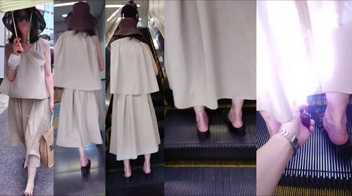 サングラスに帽子、さらには日傘で紫外線対策ばっちりの熟女です。しかし股下からの撮影対策は皆無でした。Pは白のレースでした。