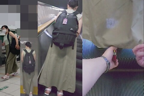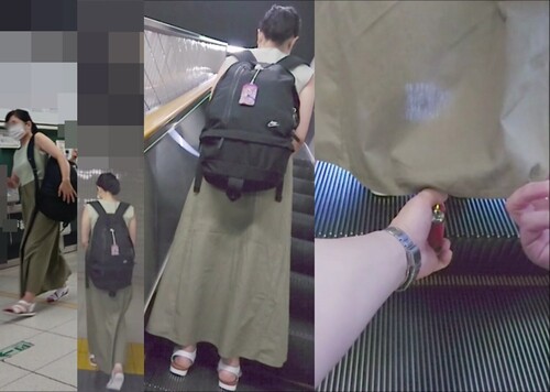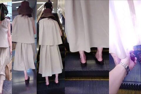 スカート内を撮影する瞬間をとらえた、決定的瞬間の映像です。