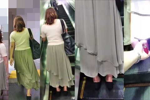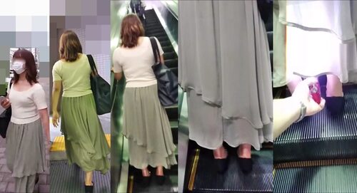 スカート内を撮影する瞬間をとらえた、決定的瞬間の映像です。