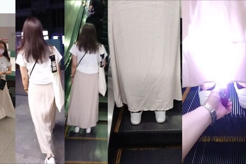 スカート内を撮影する瞬間をとらえた、決定的瞬間の映像です。