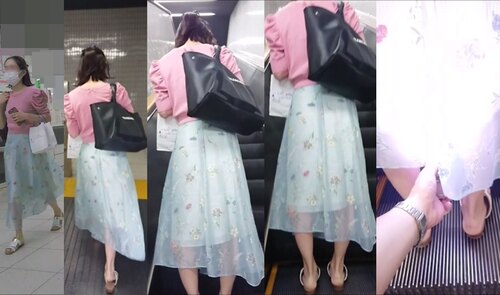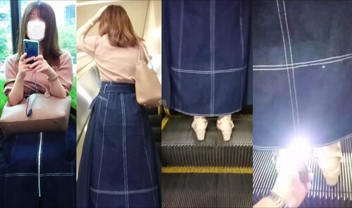 スカート内を撮影する瞬間をとらえた、決定的瞬間の映像です。