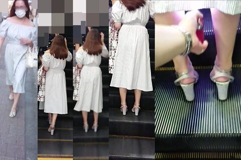 30代半ばくらいの白のワンピースの眼鏡をかけた女性です。けっこう高齢の男と一緒でしたが、エスカレーターで後ろを向くように立っていたので、撮影のチャンスは2回のみでした。その男の妻としては少し若すぎる感じなので、ひょっとしたら愛人なのかもしれません。Pは黒でナプキンを装着していました。