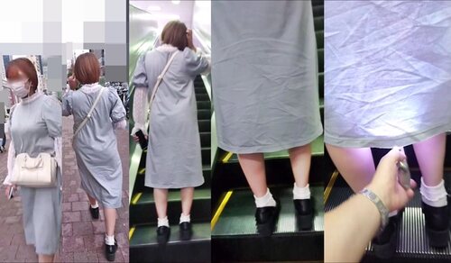 スカート内を撮影する瞬間をとらえた、決定的瞬間の映像です。