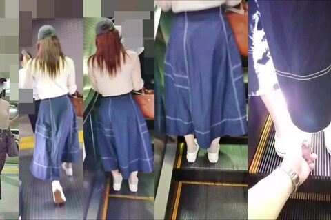 スカート内を撮影する瞬間をとらえた、決定的瞬間の映像です。