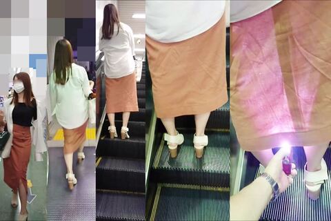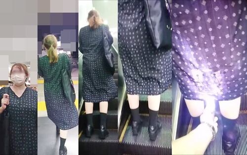 スカート内を撮影する瞬間をとらえた、決定的瞬間の映像です。
