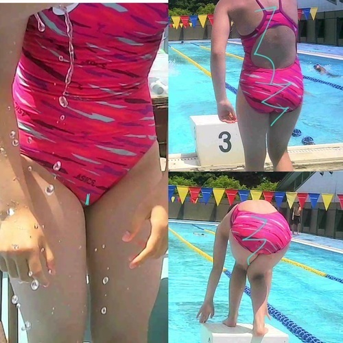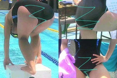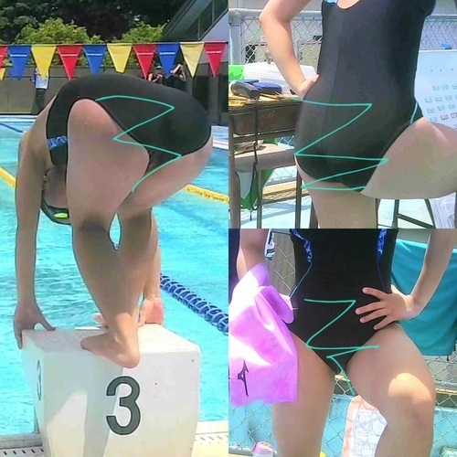 「競泳水着の少女達の部活姿1」の最初に出てきたおしりの突き出すが良い子をメインにしました。1の時と違って足まであった水着がお股の所までになっていて、よりおしりが強調されています。