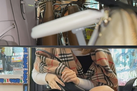 え!パンツずれてる!ほぼマ●コ出てる状態でハイブラ鞄をお買い物&スカートめくりも!