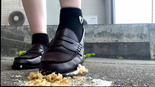 新規の女の子、帰宅途中でスイーツ、アメリカンドッグをローファーでぐちゃぐちゃに。