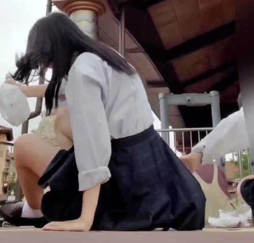 かわいいミニスカJK。ミニスカから分かるお尻の大きさ太もものプリプリ感がたまりません。