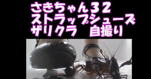 スマホ用 縦9:16 さきちゃん自撮り32浴槽内ストラップシューズでザリガニ踏み潰し