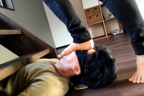 みくちゃんの私服で裸足 顔面階段踏み付け