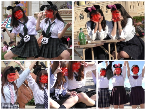 夢の国ではしゃぎすぎて無防備になった制服K達の逆さ撮り動画です!