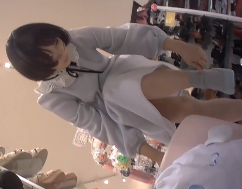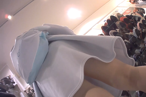 シューズショップでキュートガールを逆さ撮り