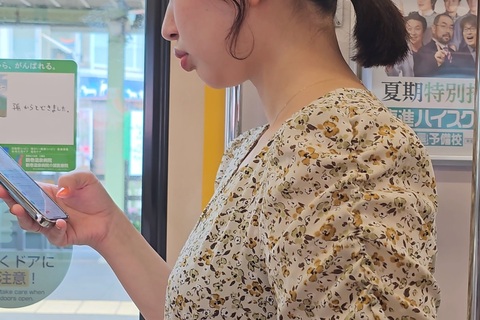 電車内こっそり胸チラ撮影