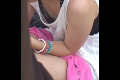 寄せればちゃんと谷間出来てます!真夏のタオル女子