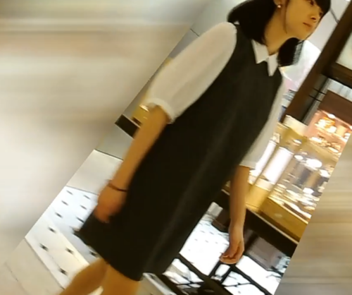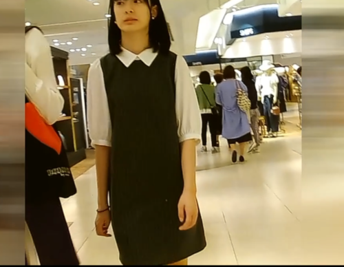清楚系ジャンパースカート女子パンストパンチラ逆さ撮り