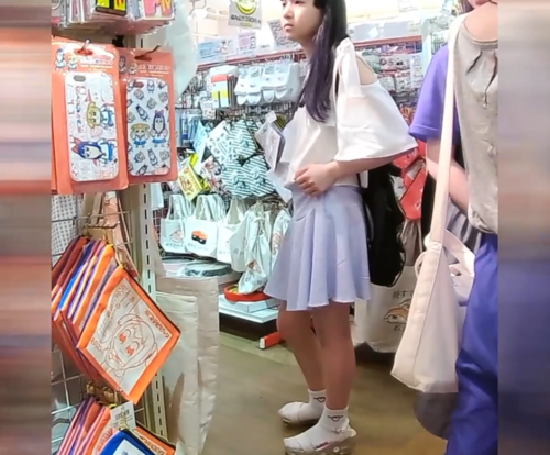 ショッピング中のカジュアル女子 カラフル柄パンティー逆さ撮り♡