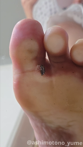 透明なガラス越しに映し出されるのは、彼女の大きく美しい素足と、その下で逃げ場を失った小さな虫たち。