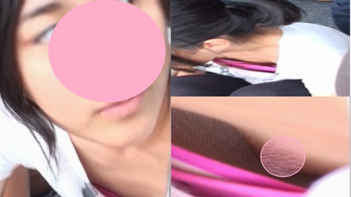 太陽の光が胸元を照らし、全て丸見え状態に!!