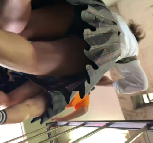 リアルな文化祭激カワお団子頭のJKを逆さパンチラ盗撮風!