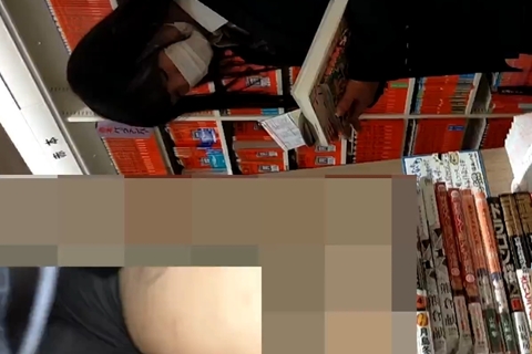 リアルな立ち読み中超清楚な黒髪ロングの制服JKを逆さパンチラ盗撮!