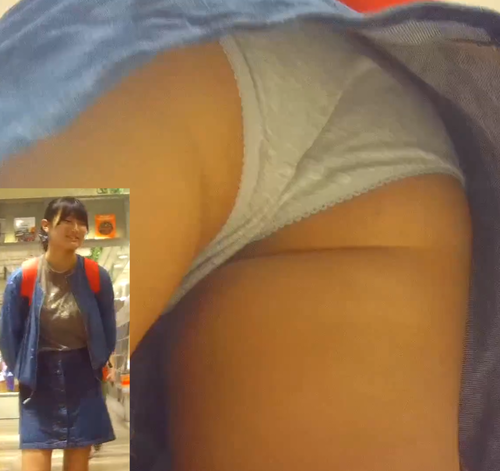 リアルな買い物中私服JKの制服JKを逆さパンチラ盗撮風!お尻突き出し生パン丸見え