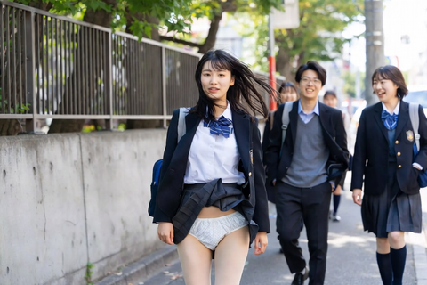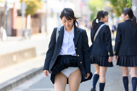 舞台は、どこにでもある見慣れた通学路。友人との談笑に花を咲かせ、家路を急ぐ彼女たちの油断した背中を、悪戯な突風がそっと突き上げます。重たいはずの紺色のプリーツが、重力から解放されるようにふわりと舞い上がったその瞬間。