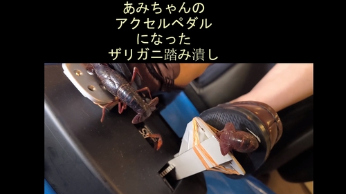 今回はペダルパンピングとザリガニクラッシュを合わせた動画です、コスプレ、ローファーでペダルにみたてたザリガニをどんどん踏んでいきます。
