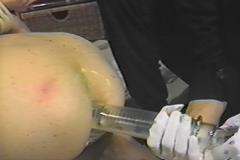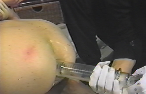 塗って、バイブ。最後に大量浣腸。アナルに指突っ込み。大量脱糞。