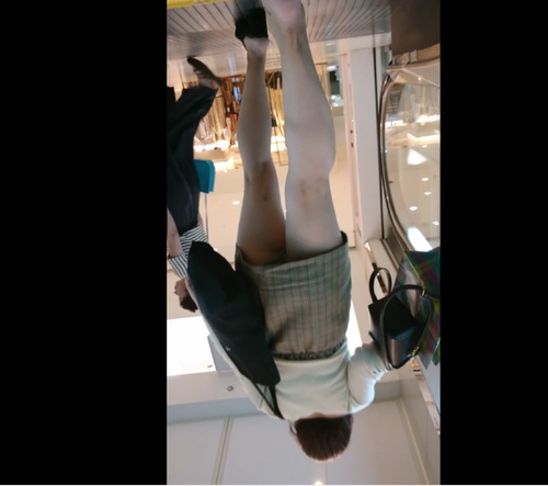 エスカレーターで美脚 美女3人 後ろから、ハイ失礼!
