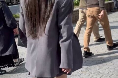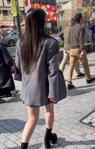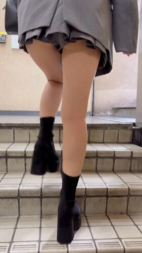 この短さで階段をのぼるので当然追跡。裏地があるスカート