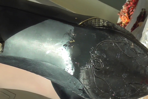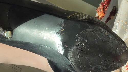 続いて何故かさっきの黒に履き替えて、とどめの踏みつけ