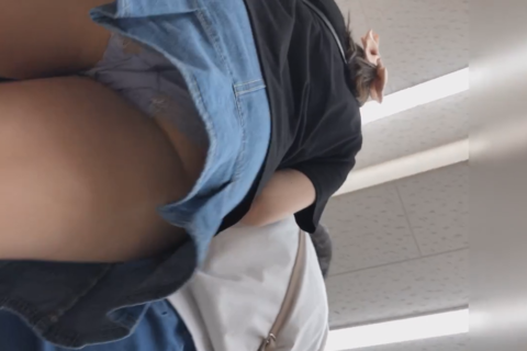 ミニスカでお買い物中にしっかり薄紫のパンティゲット👍