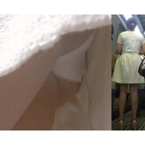 パンチラ盗撮 OLさん 白ミニスカに白パンツ