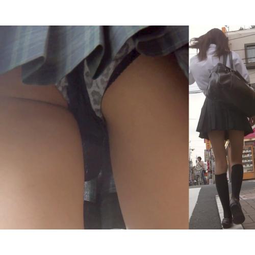 JKパンチラ盗撮 路上で神風 超ミニスカートめくれてド派手なヒョウ柄パンツ見えた